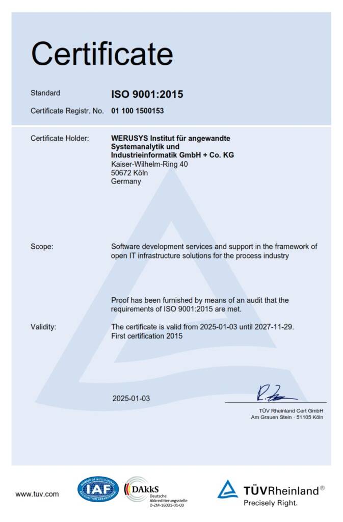 Die Zertifizierung bestätigt unsere Fähigkeit, Projekte und Services in der industriellen Digitalisierung nach klar definierten Qualitätskriterien zu planen, umzusetzen und nachhaltig weiterzuentwickeln. Für unsere Kunden bedeutet das: